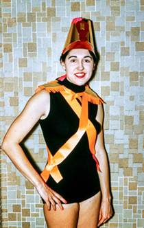 member of a local synchronized swimming team, the Aquacons.